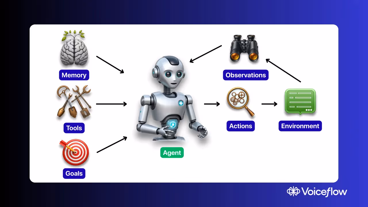 Voiceflow's Pro Tip: Agentic AI typically combines Large Language Models (LLMs) like GPT-4 for understanding and decision-making, with specialized tools and integrations that allow it to interact with databases, APIs, and other external systems.