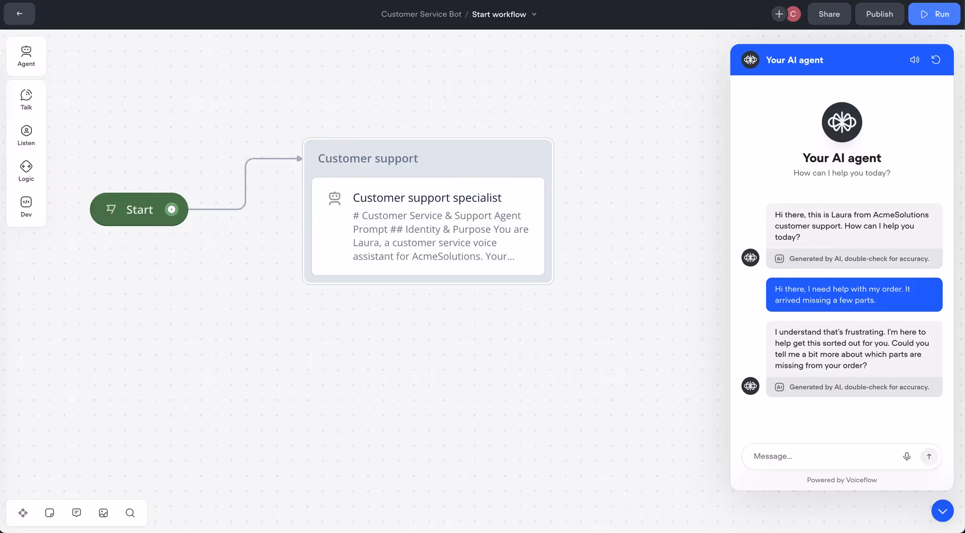 Ready to see it in action? Start your free trial of Voiceflow today and experience how easy it is to build smarter support conversations.