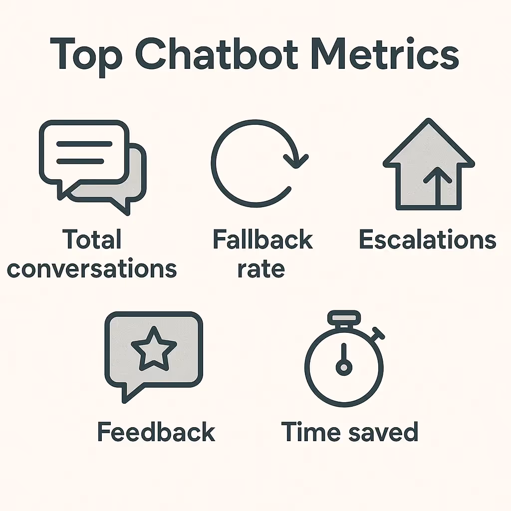 Your chatbot’s purpose drives what you measure. Ask yourself: are we trying to reduce human workload, improve answer quality, or justify investment? Once you’ve got clarity, choose metrics like: