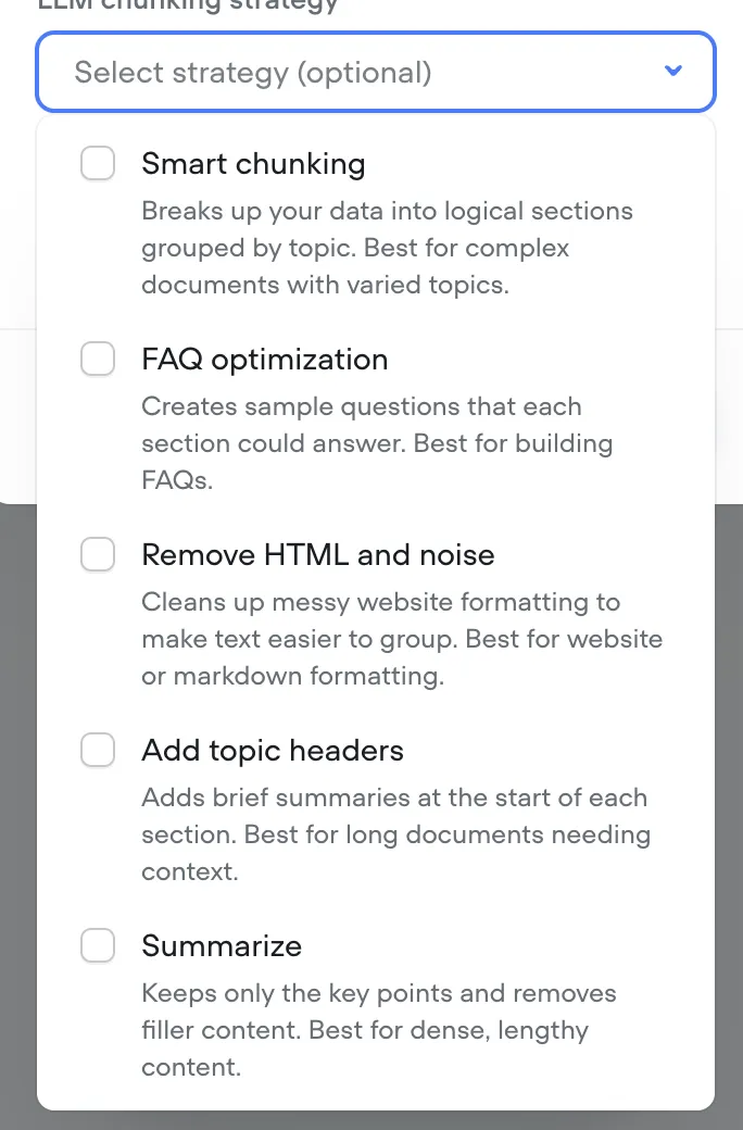 LLM Chunking Strategy - The Game Changer: When uploading your documents, Voiceflow offers different chunking strategies. For coaching businesses, always select "FAQ Optimization".