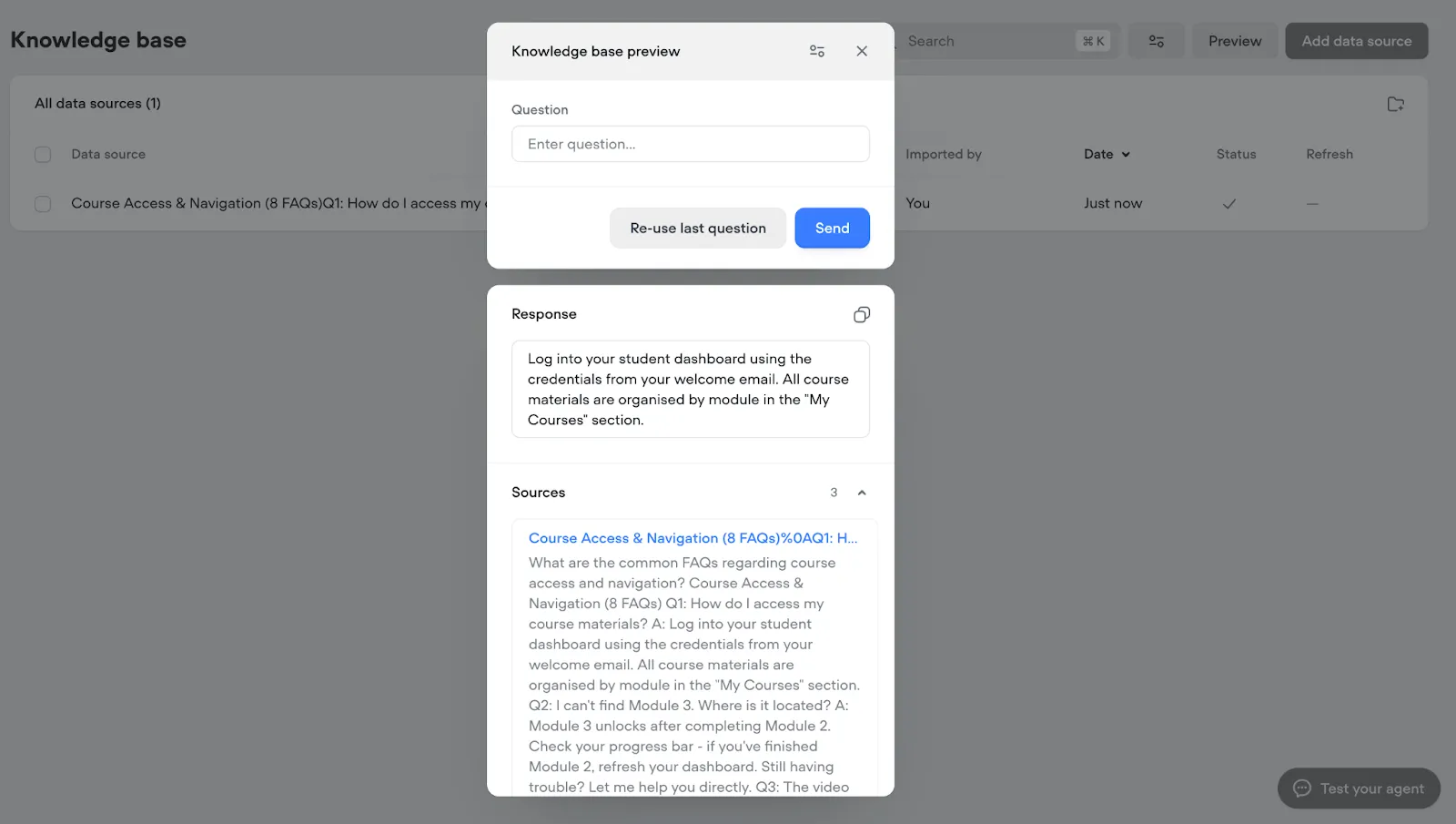 4. Test with sample questions to see improved accuracy
