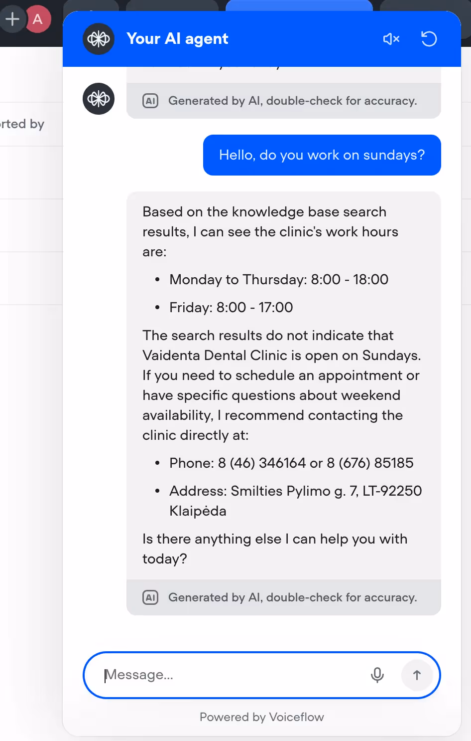This approach ensures your chatbot provides accurate information specific to your practice without requiring constant supervision from your staff.