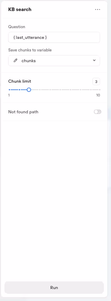 originalUserQuestion: Maps to {last_utterance}kbRelevantChunks: Maps to {chunks} from KB Search block