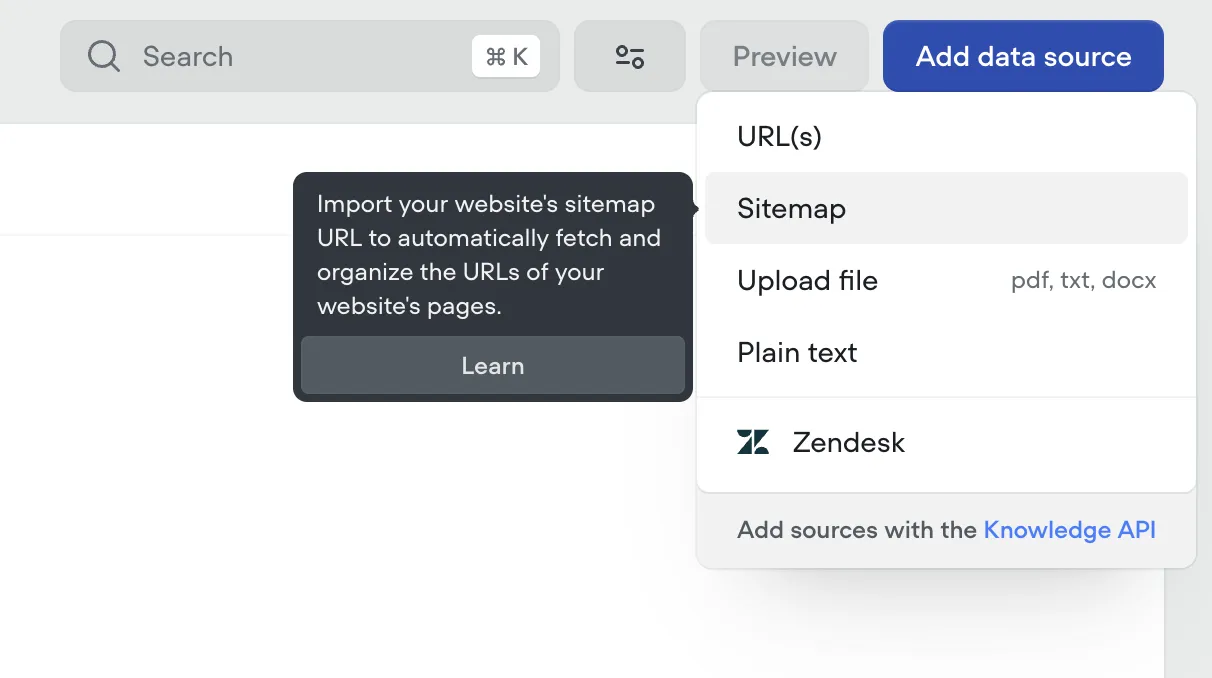 Why does this matter? Because Voiceflow lets you import the entire sitemap in one go. Instead of uploading pages one by one, you just paste the sitemap URL and boom—your whole website content is there, ready to be used by your AI agent.