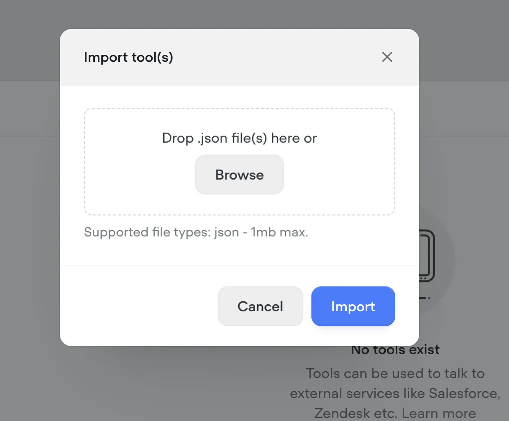 Click the "Import" icon below the big blue button "New tool" (Image - 5)