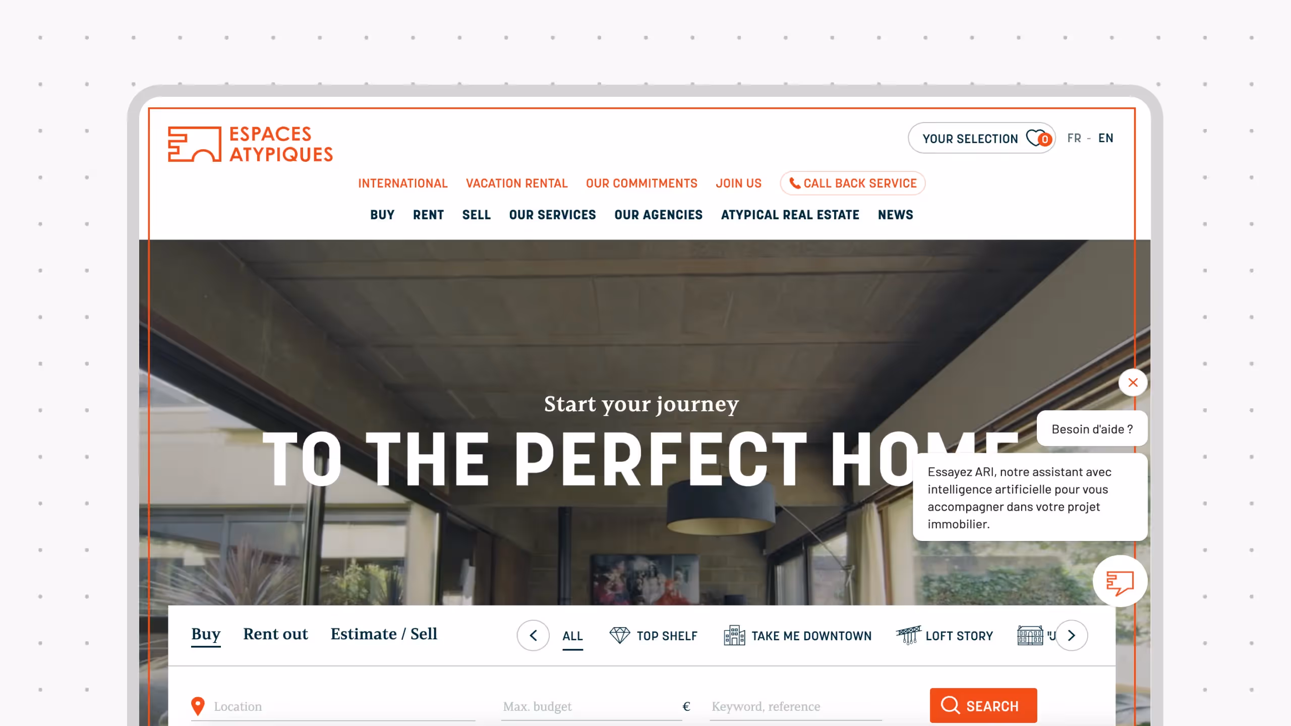 The beta version of ARI is now live on the Espaces Atypiques website and already delivering results. Buyers are engaging with listings in more conversational, personalized ways. Emotional search queries like "a loft with a view" or "a home flooded with light" receive meaningful answers.