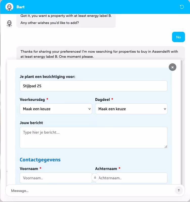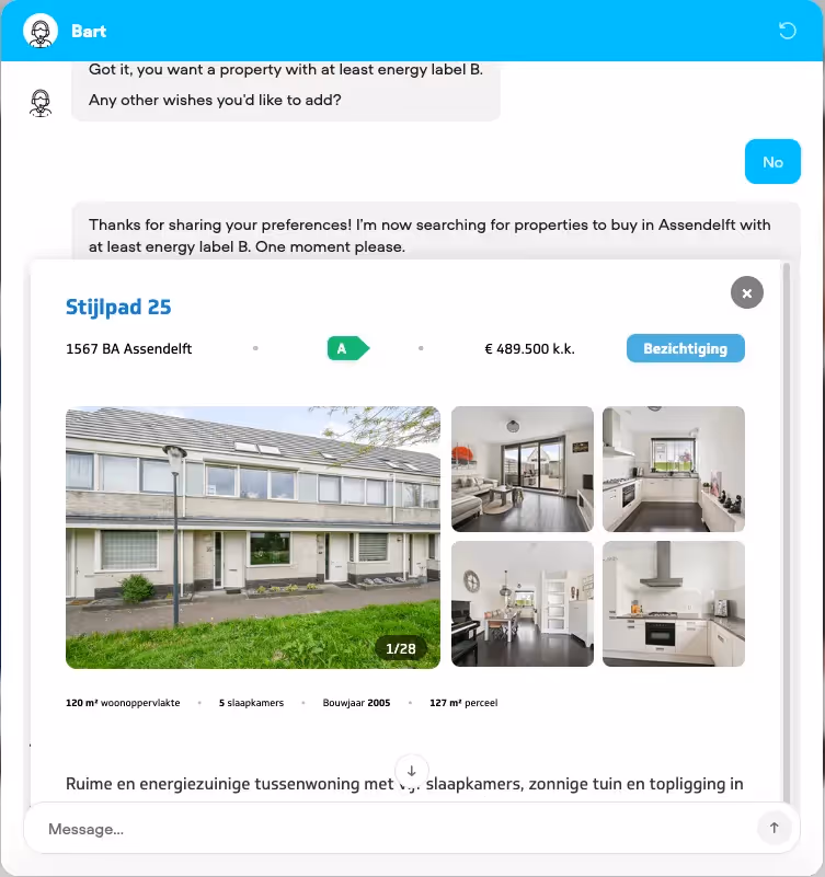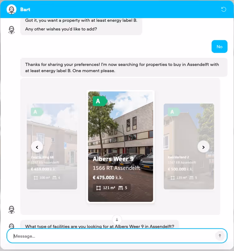 Together with Brantjes, Convizr designed a virtual broker in Voiceflow to act as a 24/7 guide for buyers and sellers.