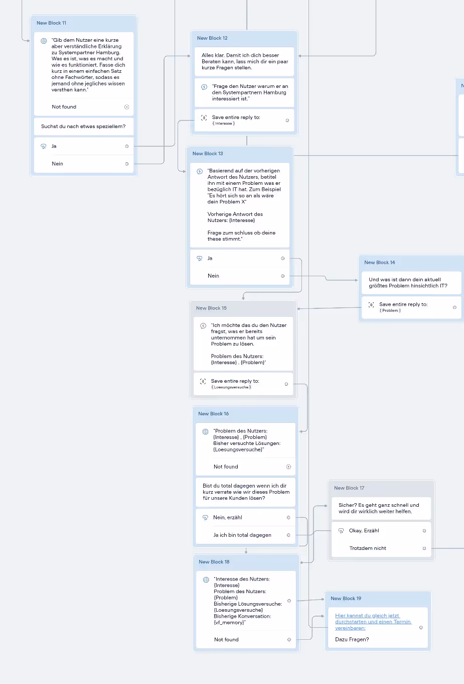 To meet these needs, we developed a tailored Voiceflow project designed specifically for Systempartner Hamburg. The solution included:
