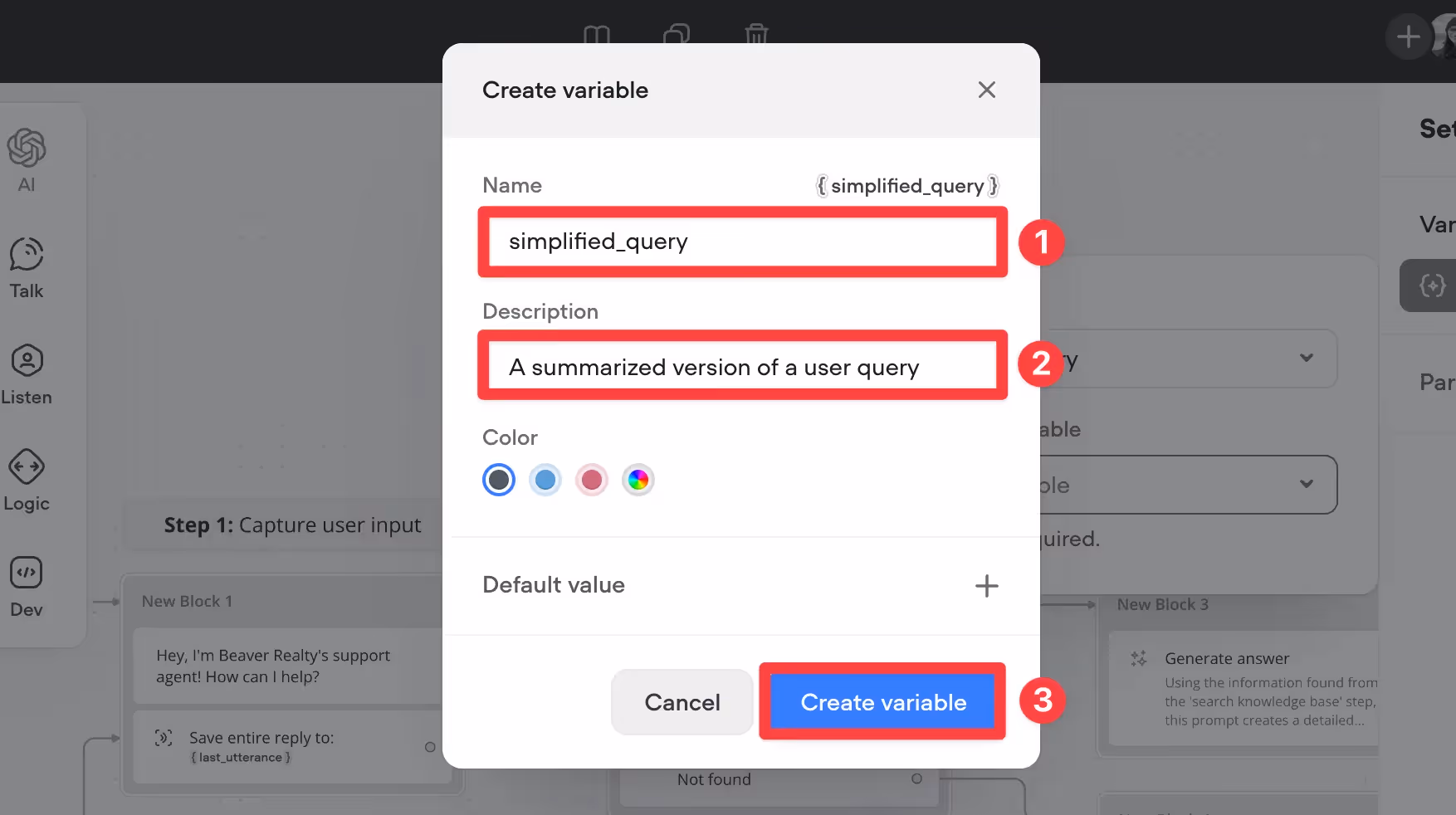 Give your variable the name simplified_query, add a description, then click Create variable.