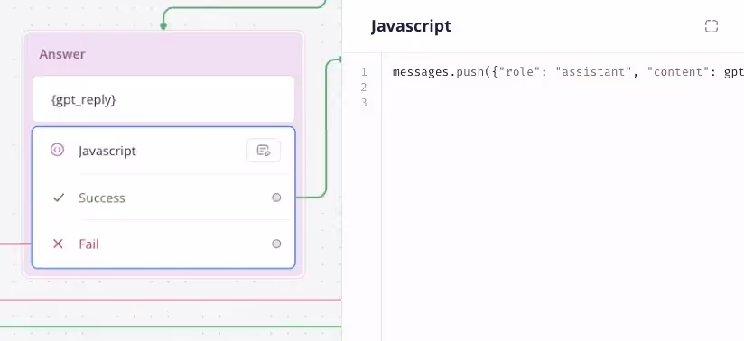 Then use a Javascript Step below to initiate the variables and push the first content to the {messages} array.