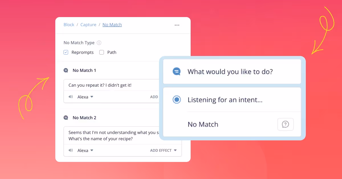 Using socially appropriate, repair-focused re-prompts like reminding, paraphrasing, and giving options, when intents are mis-recognized or missing, is an approach I came to through trial and error, and is inspired by James Giangola, a Google conversation design expert.